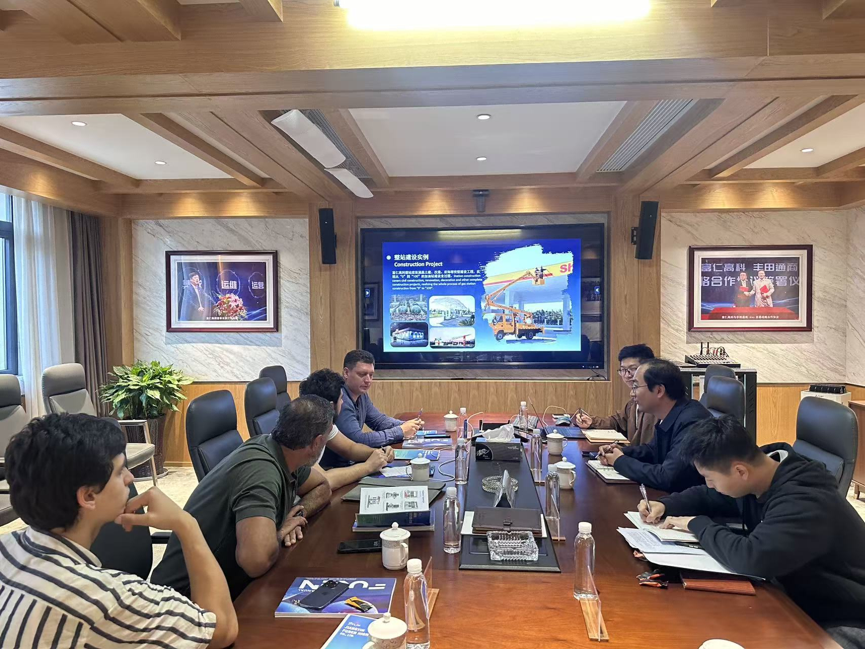 11月10日,一场聚焦加油机器人技术合作的商务会谈在富仁高科举行。来自俄罗斯AZS Control公司的核心代表团,包括总经理Tekhran Obchievich Mamaliev等,与富仁高科机器人组技术副总安凯等成员齐聚,围绕双臂AI加油机器人的技术应用、合作路径及市场落地进行深度磋商,还通过工厂与实地考察为后续合作奠定基础。