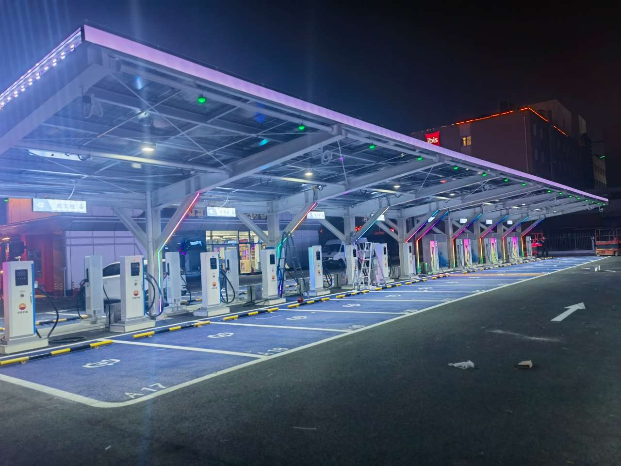 该站是中石油首座利用自有土地建设的同类示范站,位于天津开发区第三大街南侧,占地4000余平方米,设80余个充电车位。站点融合光伏、储能、液冷超充、智慧平台等全链条技术,采用光储充放一体化微电网设计,叠加车网互动等功能,构建高效智能的充电服务生态,其核心正是富仁高科定制化解决方案。