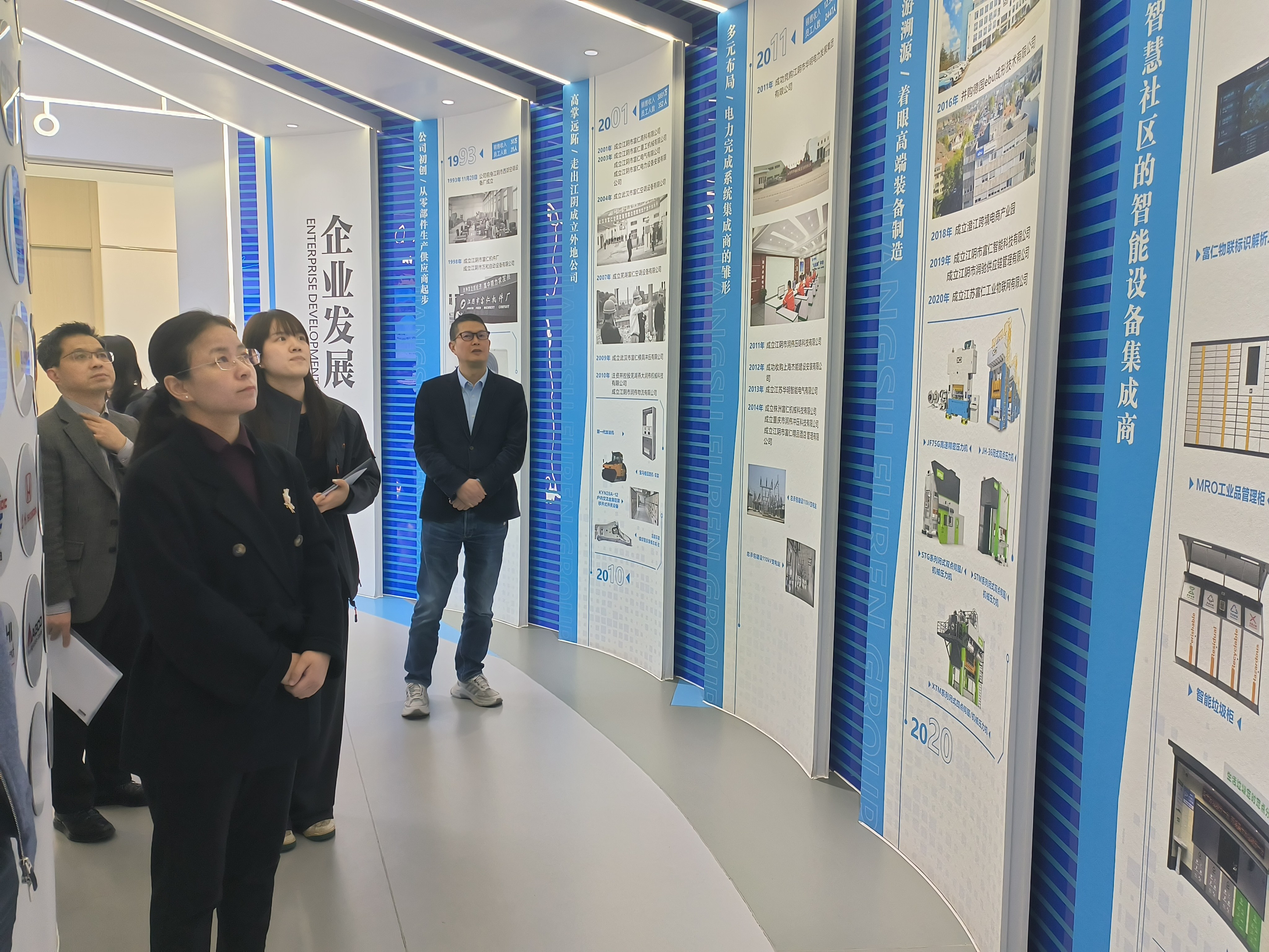 调研伊始,吴莉萍书记一行走进富仁集团企业展厅,通过图文展示、实物陈列与技术演示,详细了解企业三十多年发展历程、四大业务板块布局及核心技术成果。从传统制造到智能制造的转型轨迹,从储能系统到AI机器人的创新产品,全方位展现了富仁集团以科技为核的发展理念,得到来访领导的充分肯定。