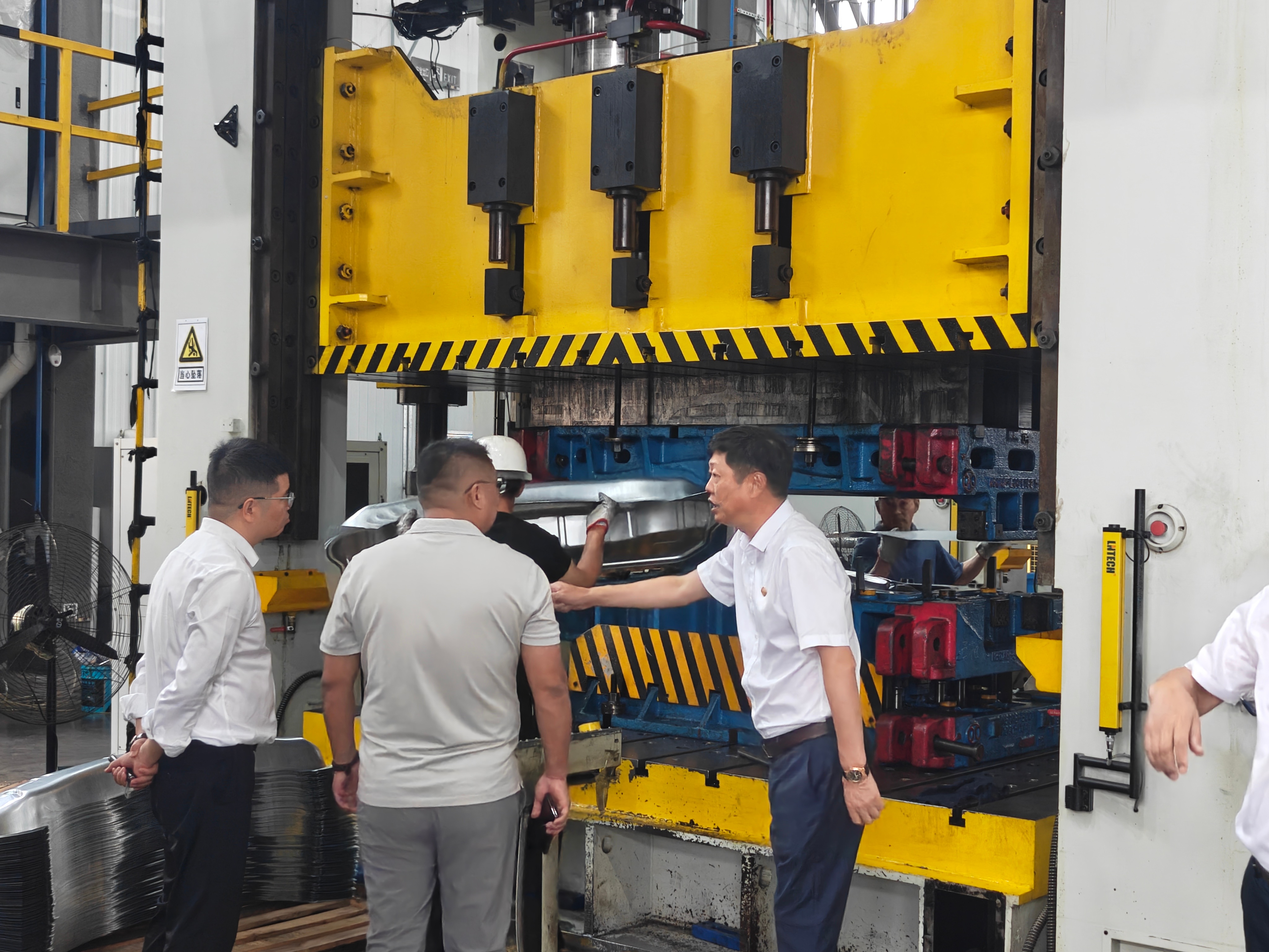 首站来到芜湖公司,在汽车车间,董事长认真察看了各条生产线的运行状态。车间内机器人焊接、热冲压线、大冲线等各条自动化设备线高速运转,工人们在各自岗位上有条不紊地操作,呈现出一派繁忙有序的生产景象。在家电车间听取订单生产进度汇报时,董事长对车间当前的生产组织能力表示肯定。他指出,面对下半年充足的订单,公司全体对待产品要精益求精,严格把控质量,确保按期交付。